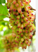 木纳格葡萄产于阿图什,是当地果农经过长期栽培、杂交、遴选的优良品种,按皮色分为红木纳格葡萄、黄木纳格葡萄、绿木纳格葡萄等。其特点是果穗大,结粒多,大果穗可达2-3公斤