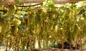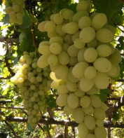 新疆葡萄甲天下,尤其以吐鲁番的葡萄最负盛名。2002年沟里种葡萄615.6公顷,生产鲜葡萄168610吨。这里主要种无核白葡萄,还有马奶子、红葡萄喀什喀尔、百加干、琐琐等13个品种。其果实成球形、卵形。椭园形等,有的葡萄晶莹如珍珠,有的鲜似玛瑙,而有的绿若翡翠。那五光十色、翠绿欲滴的鲜葡萄,令人垂涎不止。尤其是这里生产的无核白葡萄,皮薄、肉嫩、多汁、味美、营养丰富,素有珍珠美称,其含糖高达20-24%,超过美国加利福尼亚州葡萄,居世界之冠,用无核白鲜葡萄晾制的葡萄干,含糖量高达60%,被人们视为葡萄中的珍品,新疆葡萄栽培历史悠久,品种资源十分丰富,约600多个品种。有无核白、马奶子、百家干、木纳格、黑葡萄、和田红喀什哈尔粉红太妃等,尤以无核白最为名贵,皮薄肉嫩,汁多味甜,素有珍珠美称,且富含多种营养。葡萄还可酿酒、制作果酱、果汁。西域种植葡萄已有两千多年的历史了。盛夏的季节走进绿洲,家家户户的葡萄架不但会带给你阴凉,好客的主人还会采来晶莹的鲜葡萄给你消暑解渴;即使是隆冬,在塔里木盆地一带的集市上,仍然可以尝到保存得较好的葡萄。